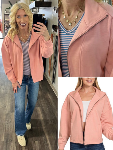 Tinlee Scuba Full-Zip Jacket - Dusty Rose