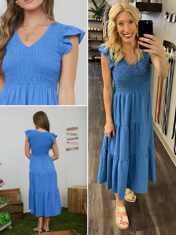 Grace Flutter Sleeve Dress - Blue