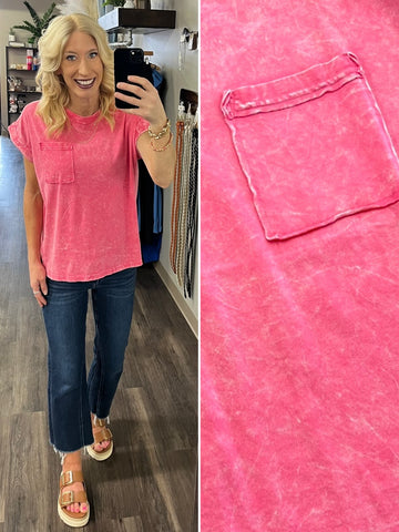 Remi Pocket Tee - Hot Pink