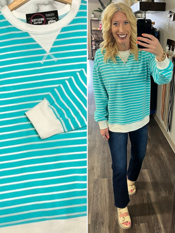 Aubrie Striped Crewneck - Teal