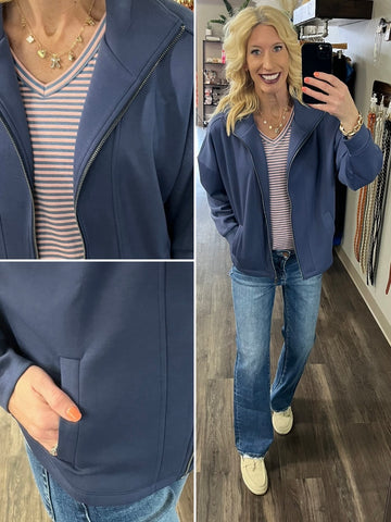 Tinlee Scuba Full-Zip Jacket - Denim