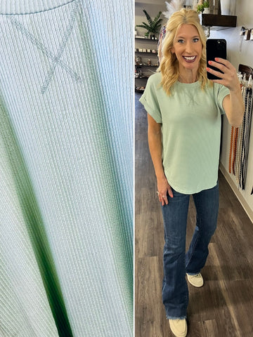 Rylee Ribbed Cap Sleeve - Mint Green