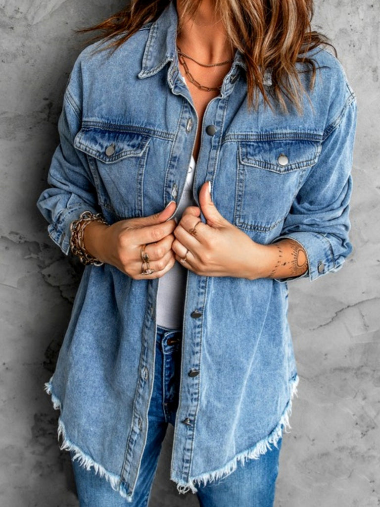 • Bridgett Denim Button-Ups with Fringe Hem