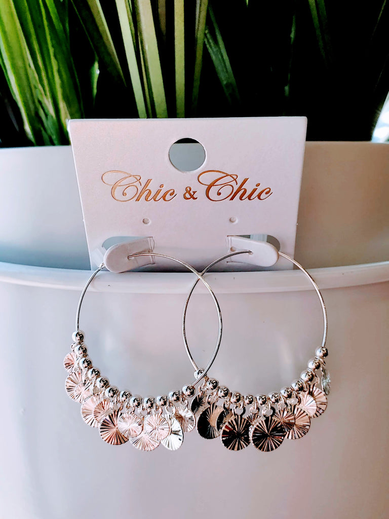• Disc Drop Hoop Earrings