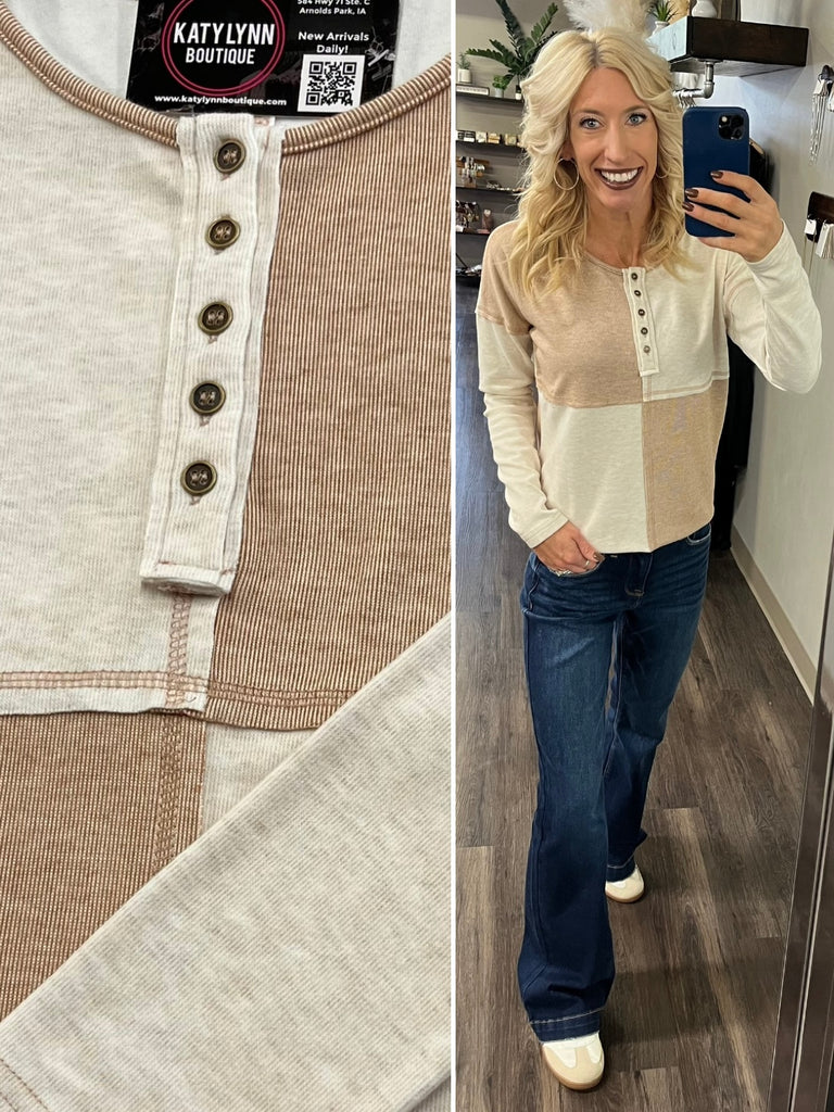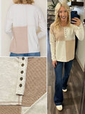 • Eliza Button Color Blocked Top - Oatmeal/Taupe