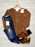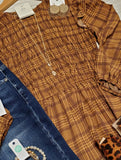 Gwen Mustard/Brown Plaid Peplum Blouse