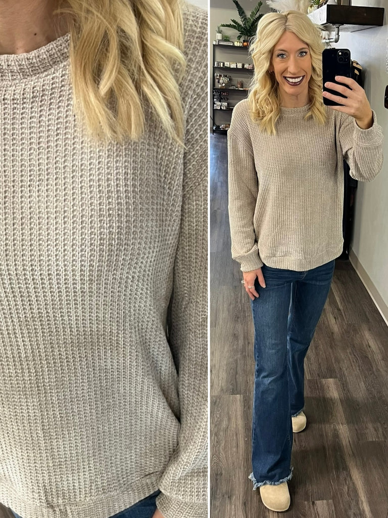 Kinsley Chenille Waffle Knit Sweater - Sand