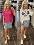 • Mila Striped Denim Skirt