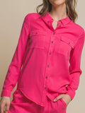 100% Tencel - Slim fit in the shoulders; size up if you generally run between sizes!