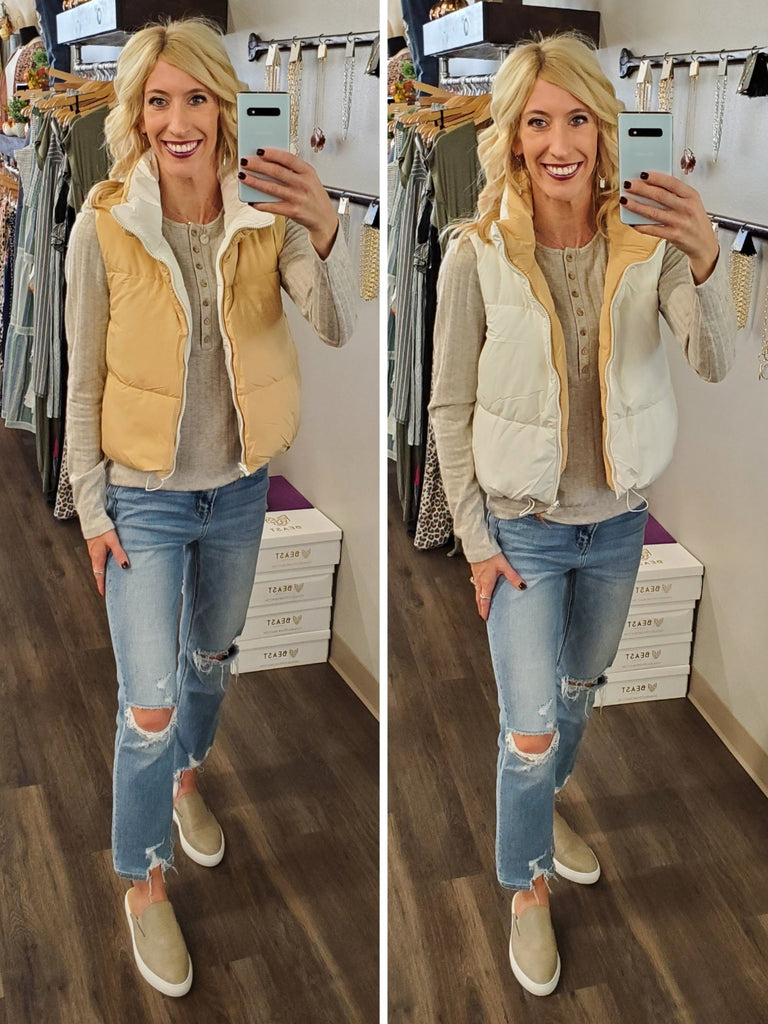 • Norway Reversible Puffer Vest - Ivory / Camel