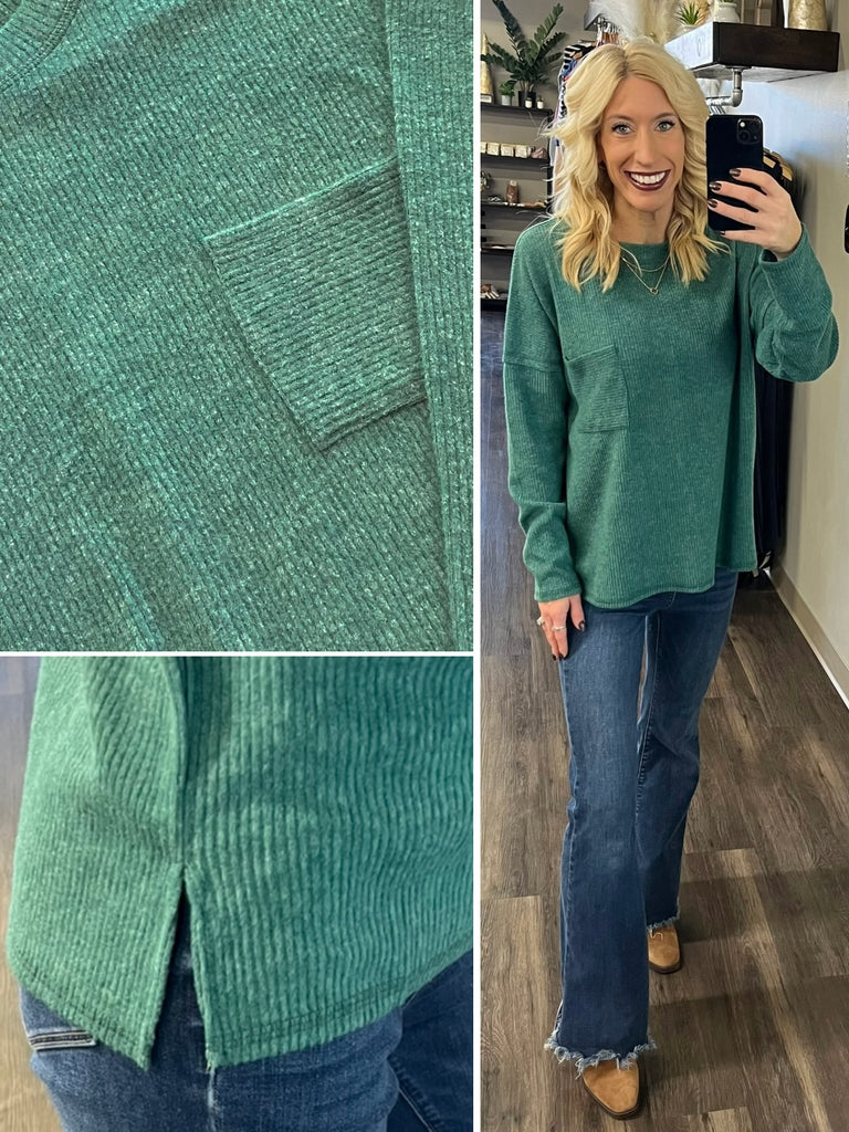 Rachel Brushed Rib Pocket Long Sleeve - Evergreen