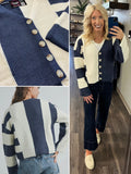• Rhonda Color-Block Cardigan - Navy/Cream