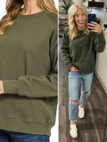 Riley Ribbed Accent Pullover - Evergreen Olive