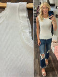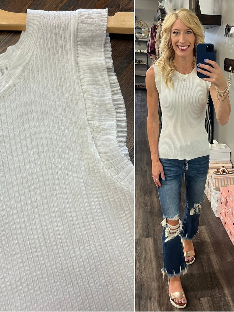 Stella Ribbed Stretchy Ruffle Sleeve - Ivory