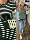 • Tami Mixed Stripe Crewneck - Hunter Green