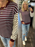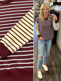 Tami Mixed Stripe Crewneck - Maroon