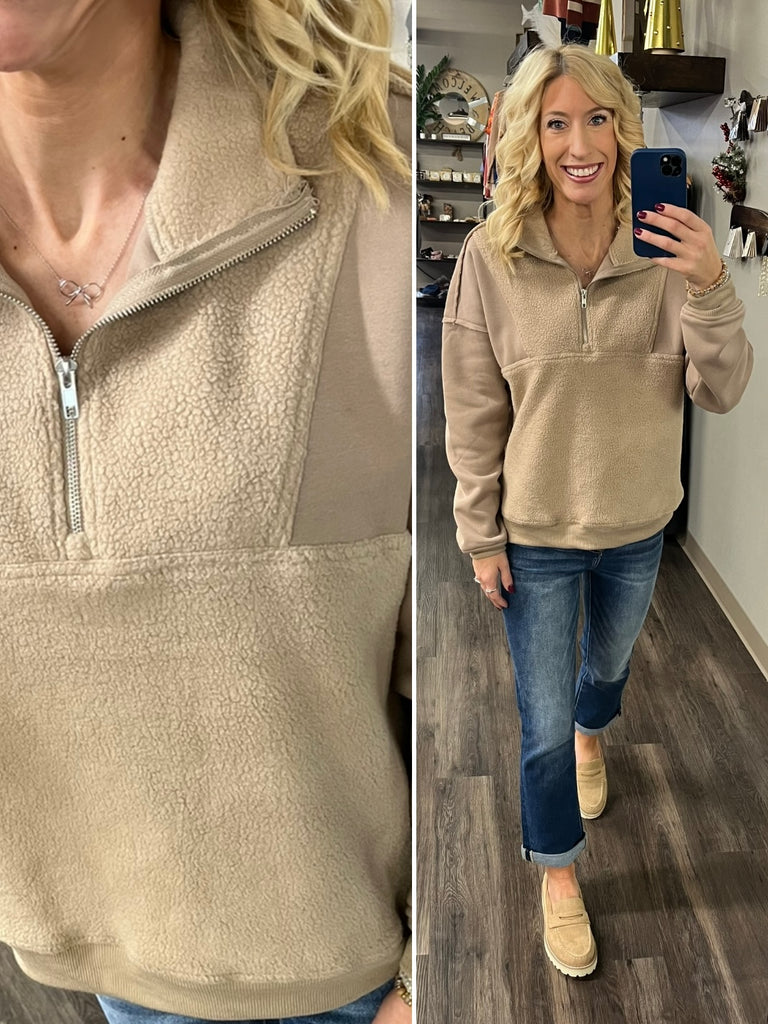 Teri Fleece Accent 1/4 Zip - Mocha
