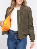 Terrin Gold-Zip Bomber Jacket -Olive - Slim fit