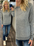 • Torrin Striped So-Soft Sweater - Gray/Latte