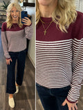 • Trinity Striped Sweater - Burgundy