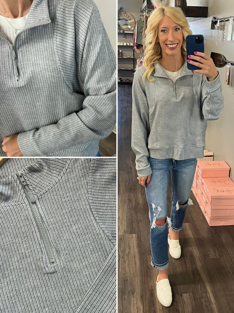 • Veronica Ribbed 1/4 Zip With Pockets - Grey