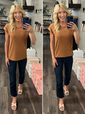 • Katrina Ribbed Cap Sleeve Top - Camel