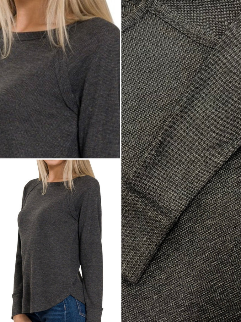 • Sonya Long Sleeve Waffle Knit - Charcoal