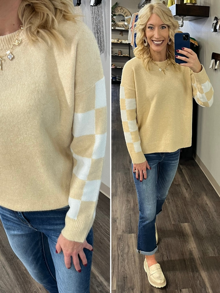 • Tracy Check-Sleeve Sweater - Light Mustard