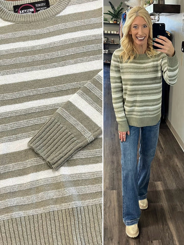 Riley Ribbed Accent Pullover - Evergreen Olive