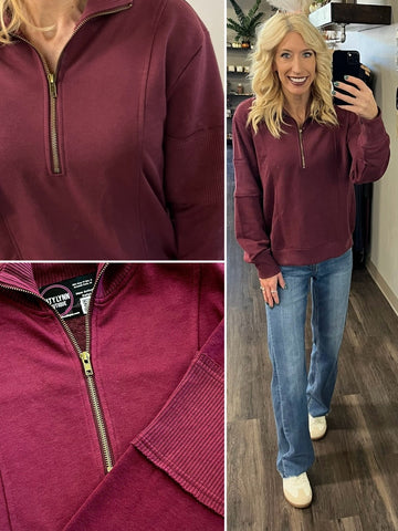 Lindsey Ribbed Accent 1/4 Zip - Maroon