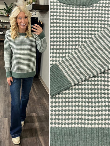 Riley Ribbed Accent Pullover - Mineral Washed Jade