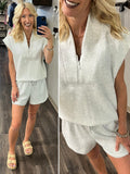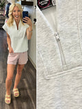 Features: - Modal Poly Span Scuba fabric - Silky smooth and light weight - 4-way stretch - Relaxed fit - Pullover - Sleeveless - Quarter zipper closure - Paneled V-neck - Dropped armhole