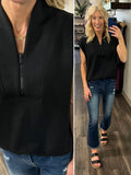 Features: - Modal Poly Span Scuba fabric - Silky smooth and light weight - 4-way stretch - Relaxed fit - Pullover - Sleeveless - Quarter zipper closure - Paneled V-neck - Dropped armhole