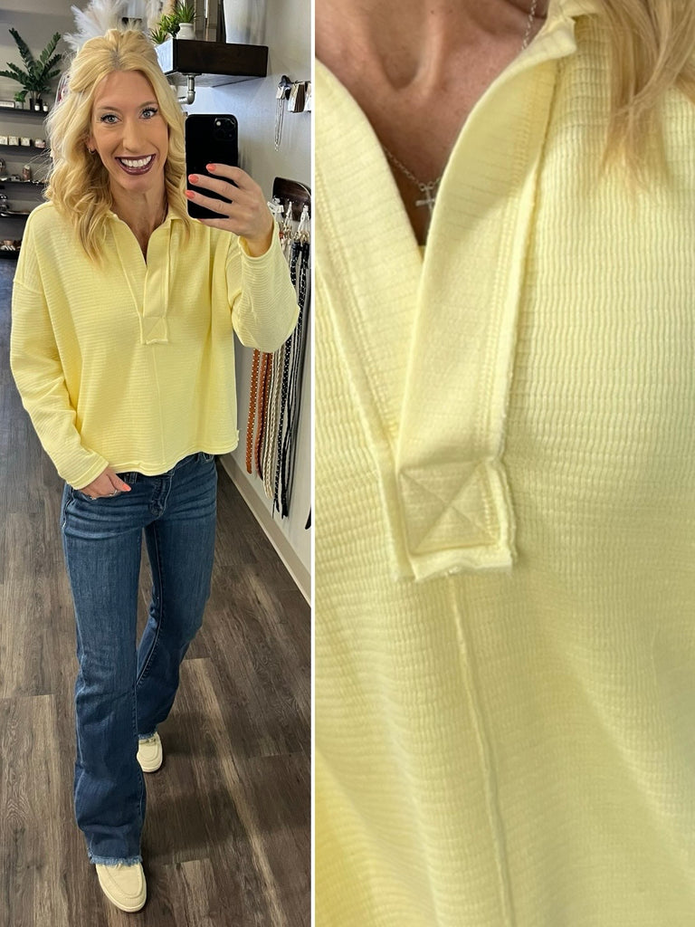 Riley Ribbed Accent Pullover - Mineral Washed Magenta
