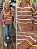 Riley Ribbed Accent Pullover - Mineral Washed Magenta
