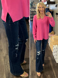 Adelaine Ribbed Ruffle Sleeve - Pink