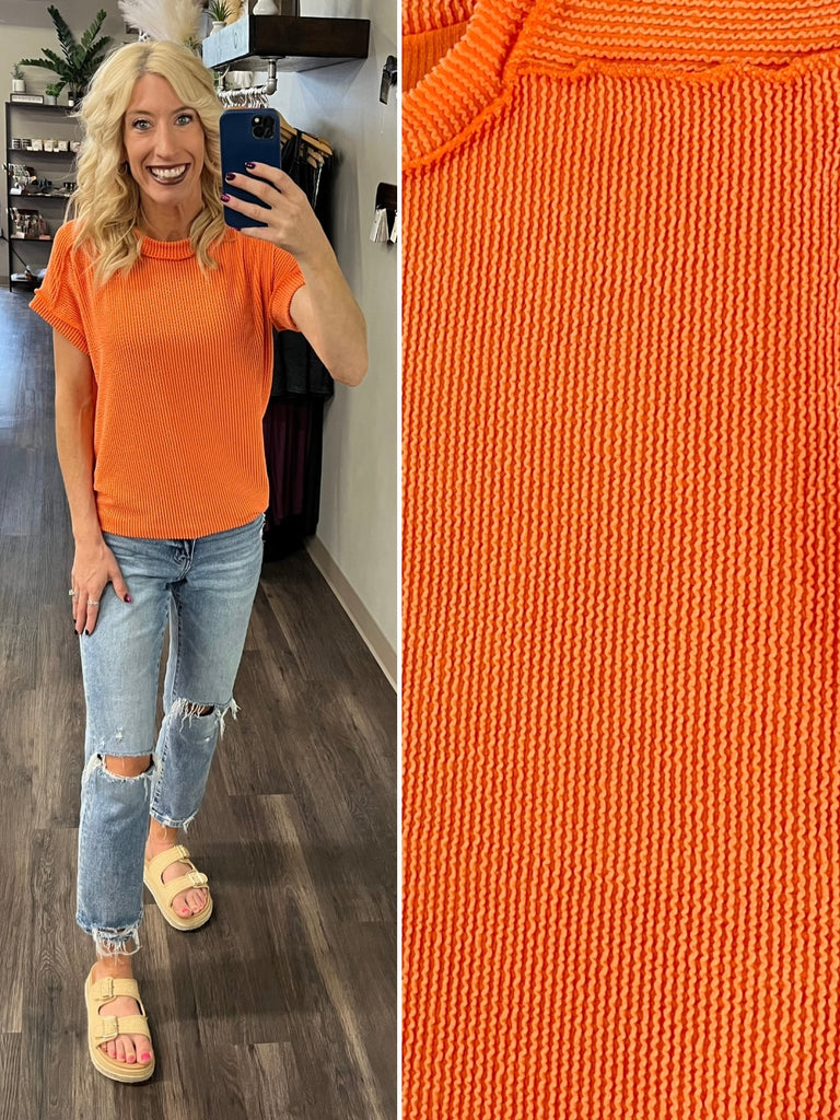 Afton Open-Knit Top - Tomato Red