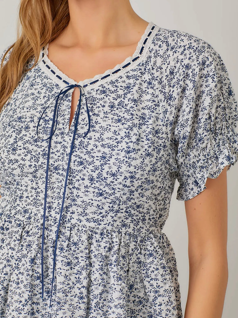 Charlotte Square-Neck Ruffle Sleeve Dress