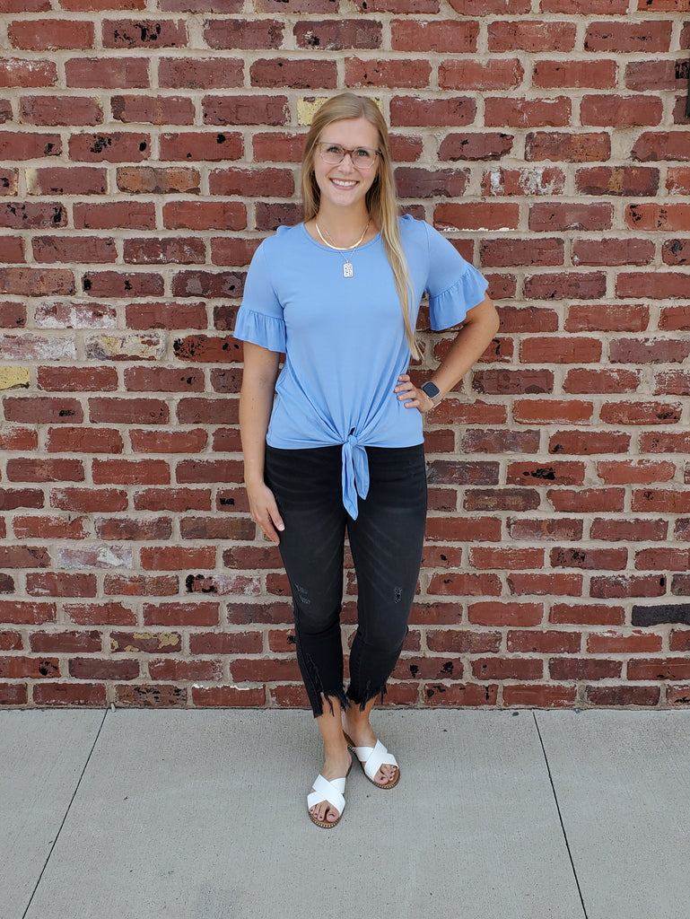 Adelaine Ribbed Ruffle Sleeve - Pink