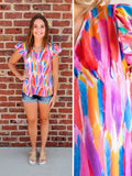 Adelaine Ribbed Ruffle Sleeve - Pink