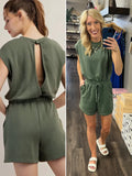 - Adjustable Elastic Waist Band - Side Pockets - Cutout at Back with Button Closure