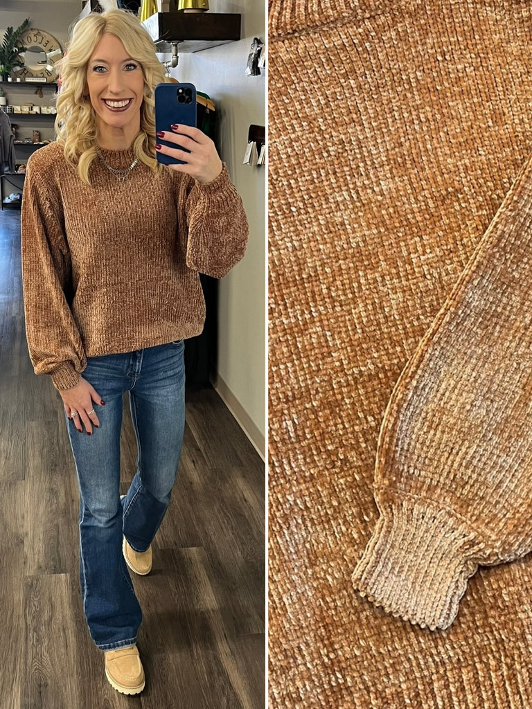 Celeste Puff Sleeve Crewneck - Taupe