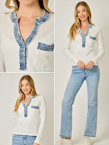 Eliza Button Color Blocked Top - Oatmeal/Taupe